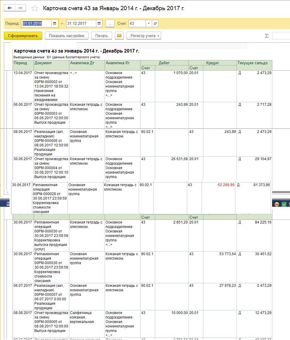 По умолчанию Re: Корректировка стоимости списания. Счёт 90.02.1 Висит минус, красное число.