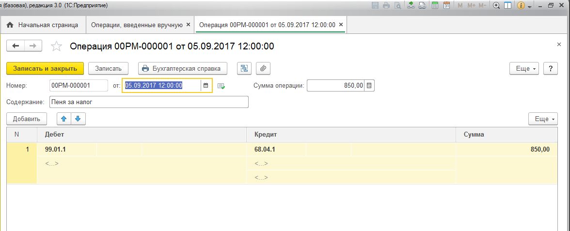 Или вы имеете ввиду просто выбрать из списка чтобы в низу было подписано под счетом 99.01.1 причитающиеся налоговые санкции, а под 68.04.1 пени до начислены, уплачены