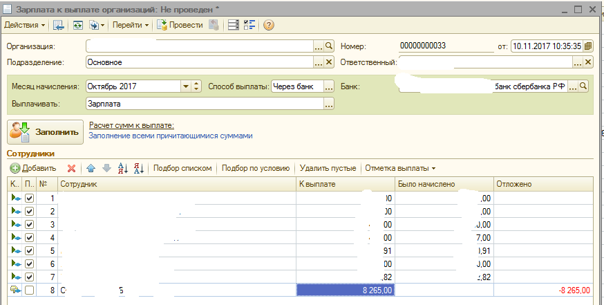 Делаю выплату зарплаты за октябрь. И у этого сотрудника из-за получившейся переплаты отпускных к выплате ничего не ставится. Я так запутаюсь потом, где и за что и какая сумма... а если вручную поставить, то вот такая ерунда выходит: