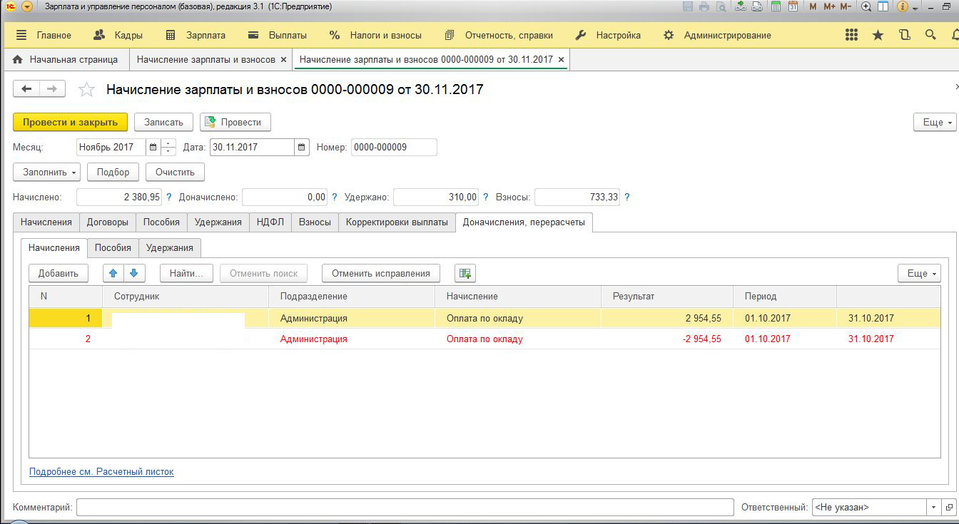 Скажите пожалуйста проводила, делала начисление зарплаты за ноябрь. В октябре был отпуск, программа потребовала "до начисление, перерасчёты". сделала, не было ни каких красных цифр, программа начисляла и отпуск и зп и взносы правильно. Стала начислять зп в ноябре, вылезло вот это? Я не могу понять что это?