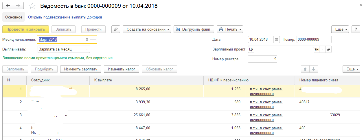 А ещё в банковской выписке (на выдачу з/п) НДФЛ к выдаче не проставляется. А если проставляется - то по некоторым сотрудникам типа 1 р. И приходится заносить руками.