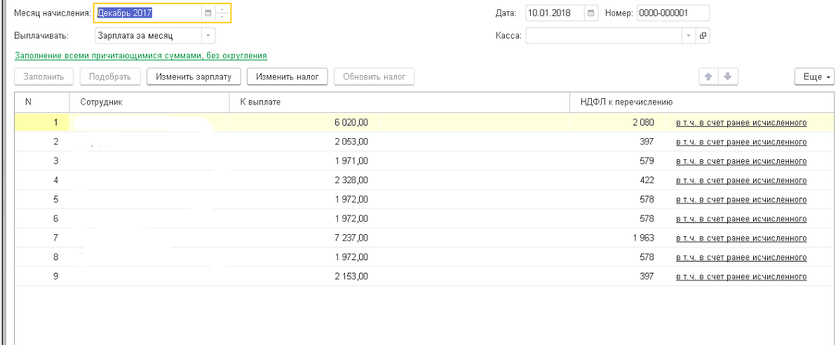 Почему не ставит НДФЛ к перечислению? При том, что начисляет то правильно.... Зарплата к выплате тоже не у всех сотрудников правильная.
