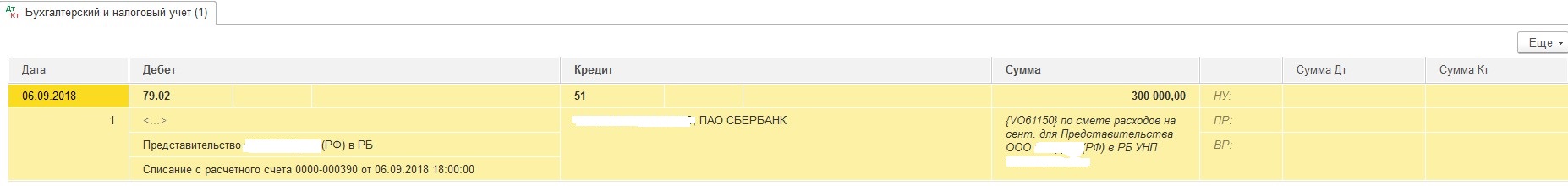 Перечисление Представительству по смете (1С 8.3.0.64.29)