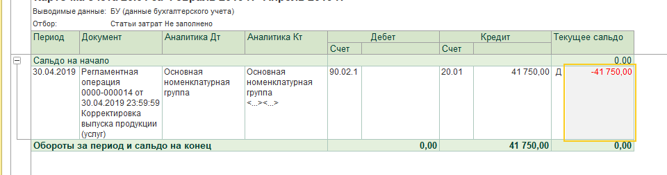 Оборудование стоимость до 40000 рублей передала в эксплуатацию (склад===передача материалов в эксплуатацию====инвентарь и хоз. принадлежности) счет указала (20.01 и 10.09). При закрытии месяца показывает минус, это так и должно быть или я что-то не так сделала?