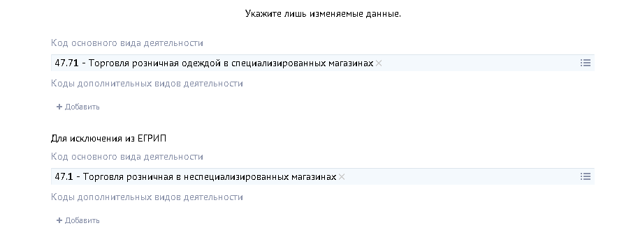 47.1 полностью исключила ,блин....нажала к отправке, думала сначала проверка, потом "отправить", а получилось сразу отправилось...Ну да ладно, пока по ОКВЭД 47.1 никакой деятельности не предвидится, если чО добавлю, теперь знаю, как это делается