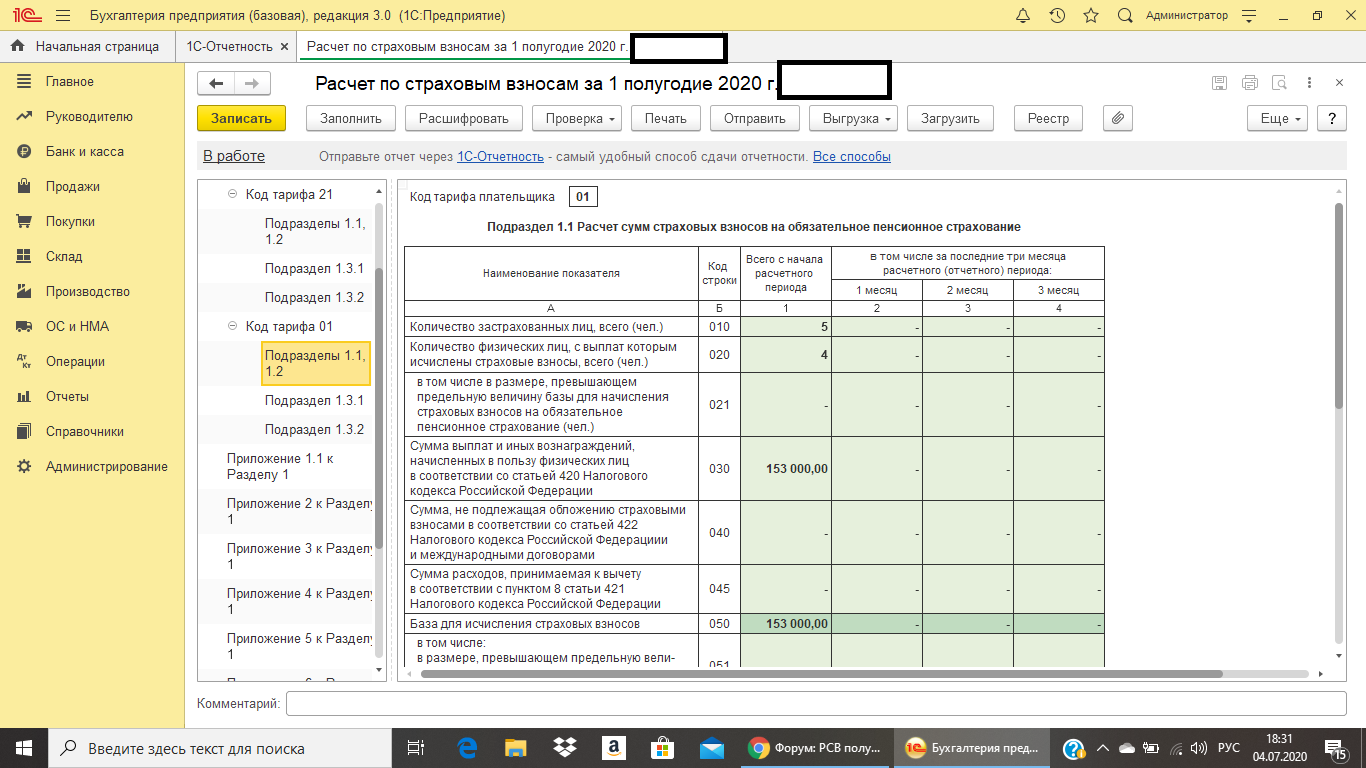 Численность по коду тарифа 01 я не ставила помесячно, потому что по коду 01 начислений не было во втором квартале. По тарифу 01 в графе 1 по строкам 010 и 020 численность указала. А по тарифу 21 получается заполняем помесячно, так как по этому тарифу начисления были. При проверке не ругается.На следующей неделе сдам.