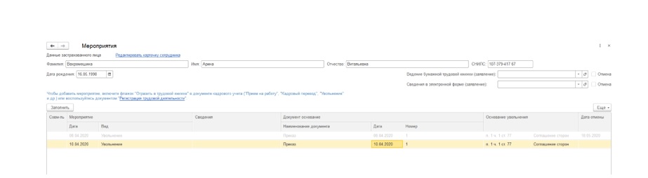 Материалы газеты «Прогрессивный бухгалтер», бюджетный выпуск, лето 2020. .Юлия Пыркова, главный бухгалтер-консультант бюджетной Линии консультаций «ГЭНДАЛЬФ» С внедрением электронных трудовых книжек у работодателей появилась обязанность представлять в органы ПФР сведения о трудовой деятельности физических лиц – форму СЗВ-ТД. Когда сдавать Форма и порядок заполнения сведений о трудовой деятельности зарегистрированного лица утверждены Постановлением Правления ПФР от 25.12.2019 № 730п. В соответствии с Постановлением № 730п сведения о работниках по форме СЗВ-ТД передаются в ПФР не позднее 15 числа месяца, следующего за месяцем, в котором произошли кадровые мероприятия. Однако в связи с коронавирусной инфекцией срок представления формы СЗВ-ТД изменился, 27.04.2020 вступило в силу постановление Правительства РФ от 26.04.2020 № 590. Данным Постановлением предусмотрено: если прием или увольнение работника произошли в период с 1 по 27 апреля, то СЗВ-ТД на каждого принятого или уволенного сотрудника необходимо представить не позднее 28 апреля; по всем случаям трудоустройства или увольнения с 28 апреля 2020 г. СЗВ-ТД подается не позднее рабочего дня, следующего за днем издания кадрового документа; при переводе сотрудника на другую постоянную работу или в случае подачи сотрудником заявления о выбранном им способе ведения трудовой книжки (на бумаге или в электронном виде) СЗВ-ТД нужно представить не позднее 15 числа следующего месяца. В Постановлении № 590 не утверждены специальные сроки представления СЗВ-ТД в отношении таких кадровых мероприятий (п. 2.5.3 постановления Правления ПФР от 25.12.2019 № 730п) как: присвоение работнику второй и последующей профессии, специальности или квалификации; вынесение судом решения о запрете работнику занимать определенные должности или заниматься определенной деятельностью. Исходя из этого, можно сделать вывод, что в отношении данных случаев действует срок представления формы СЗВ-ТД, предусмотренный пунктом 2.5 ст. 11 Закона № 27-ФЗ – не позднее 15-го числа следующего месяца. На бумаге или электронно? Форма СЗВ-ТД может подаваться как в бумажном, так и в электронном виде. На бумажном носителе форму могут предоставить работодатели, численность работников которых составляет менее 25. Форма заполняется чернилами, шариковой ручкой (кроме красного и зеленого цвета чернил) печатными буквами или при помощи средств вычислительной техники без помарок, исправлений и сокращений слов. Сведения заверяются подписью руководителя или доверенного лица и печатью учреждения (при наличии). В электронном виде форма может подаваться всеми работодателями. Форма, представляемая работодателем, численность работников которого больше 25 человек, заверяется усиленной квалифицированной электронной подписью в соответствии с законом № 63-ФЗ от 06.04.2011 «Об электронной подписи», при численности работников менее 25 человек – электронной подписью. Ошибка в сведениях о трудовой деятельности: как исправить Рассмотрим пример отправки корректировочного отчета СЗВ-ТД, если при первичной подаче отчета кадровое мероприятие по работнику было указано неверно, например неверная дата увольнения, в программе «1С:Зарплата и кадры государственного учреждения 8», ред. 3.1. После отправки отчета СЗВ-ТД (с неверной датой) в документе «Увольнение» программа выдает предуп