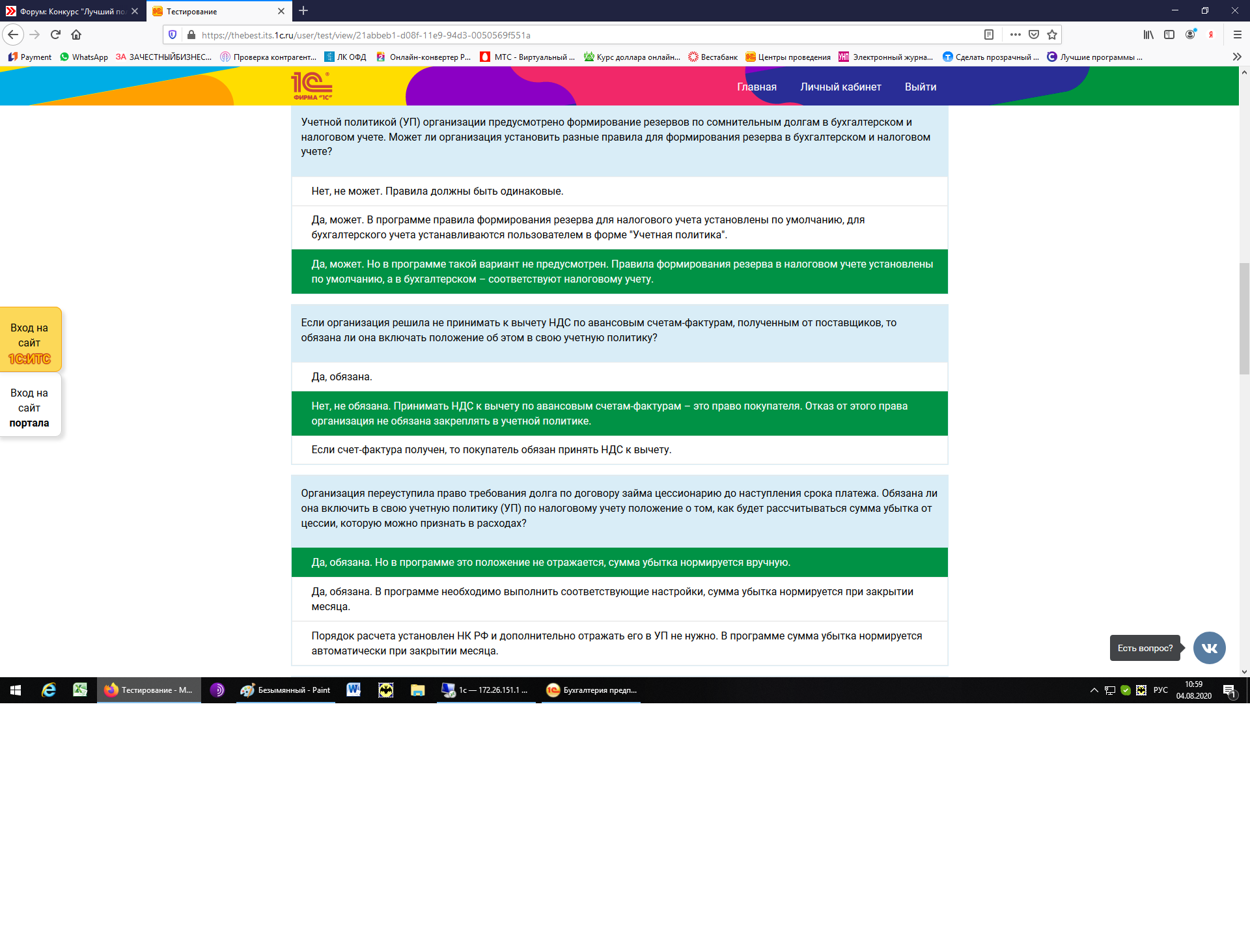 это я поняла, там вопросы на знание и 1с? и учета и законодательства?