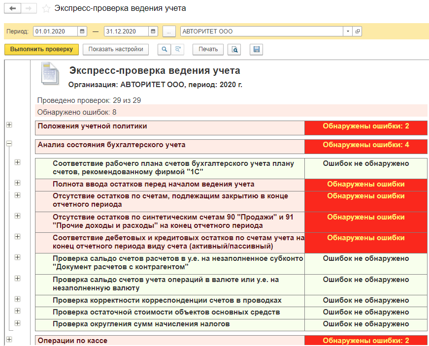 Завершающий этап подготовительных мероприятий для сдачи отчетности – это запуск обработки «Экспресс-проверка ведения учета» (рис. 5).