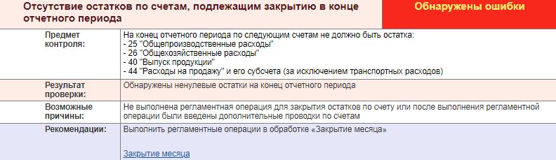 Далее формируется отчет с детальной информацией о каждой выявленной ошибке с подсказками по исправлению (рис. 6). При необходимости из отчета можно перейти к первичным документам и исправить их.