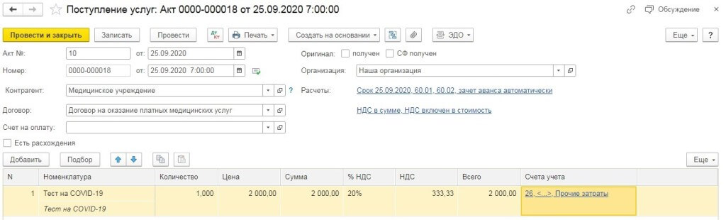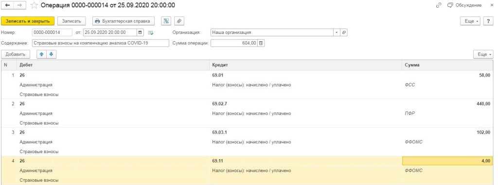 Отражаем оплату компанией сдачу анализов работником на COVID-19