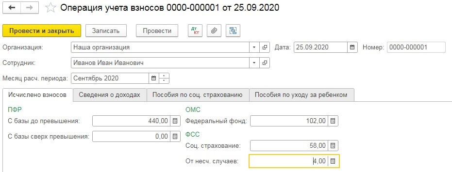 Таким образом, мы укажем в программе исчисленные страховые взносы в регистрах учета для верного формирования отчетности в дальнейшем.