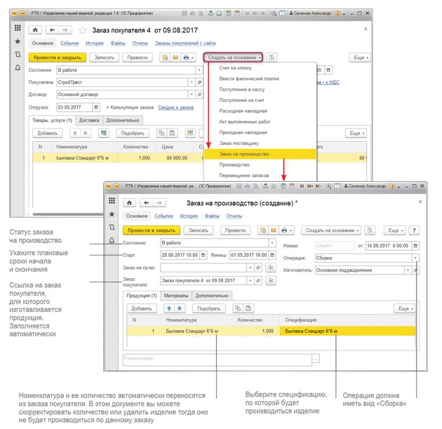 Материалы газеты «Прогрессивный бухгалтер», декабрь 2020. Виктория Лихушина, бухгалтер-консультант Линии консультаций компании «ГЭНДАЛЬФ». В продолжение серии статей о конфигурации «1С:Управление нашей фирмой 8» рассмотрим автоматизацию бизнес-процессов на примере производственной компании. Возможности по учету производства «1С:Управление нашей фирмой 8» позволяет выполнять комплексное ведение производственного учета — позаказного и серийного. С помощью программы вы сможете контролировать все этапы производства и выполнения заказов, проводить детальный анализ работы предприятия. Пользователям программы доступен встроенный удобный планировщик производства с гибкой настройкой под индивидуальные нужды. В программе реализовано: формирование задания на производство под заказ клиента; отслеживание состояний производственных заданий; ведение спецификаций с материалами для каждой продукции; учет выпуска полуфабрикатов и продукции. Отчеты программы позволяют узнать плановую себестоимость готовой продукции и проанализировать объем производства за нужный период. Для активации производственного учета установим соответствующие флажки в настройках учета (раздел «Компания» – «Еще больше возможностей» – вкладка «Производство»). После данных действий раздел «Производство» станет доступным. Рис.1 Далее установим флажок «Резервирование запасов», чтобы получить возможность размещения заказов покупателей в производство и осуществлять контроль их обеспечения (раздел «Компания» – «Еще больше возможностей» – вкладка «Закупки»). Рис.2 Планирование себестоимости: спецификации Спецификации продукции предусмотрены для автоматизации списания материалов в производство, а также корректного расчета плановой себестоимости изделия в программе. Спецификация определяет перечень используемых материалов и список выполняемых технологических операций. Перед тем как создать спецификации, необходимо заполнить в справочнике «Номенклатура» (раздел «Компания» – «Номенклатура»): Продукцию. Материалы. Технологические операции производства. Теперь откроем карточку продукции в справочнике «Номенклатура» и перейдем к вводу спецификации по одноименной ссылке. Технологические операции, которые необходимы при производстве для данной продукции, можно указать на вкладке «Операции». В программе реализована возможность создать несколько спецификаций для одной номенклатурной позиции. Для того чтобы получить плановую себестоимость продукции, необходимо к каждому материалу и каждой операции в спецификации добавить закупочную цену. Аналогичным образом назначим учетные цены для технологических операций (номенклатура с видом «Операция»). Только в этом случае в качестве цены введите тариф для сотрудника за выполнение операции. Отчет «Нормативный состав изделия» позволит узнать плановую себестоимость продукции (раздел «Производство» – «Отчеты»). Создание заказа на производство Документ «Заказ на производство» предназначен для планирования производства определенной продукции к заданному сроку. Создадим данный документ можно на основании документа «Заказ покупателя». Также его можно создать в разделе «Производство» по одноименной ссылке (раздел «Продажи» – «Заказ покупателя» или раздел «Производство» – «Заказ на производ