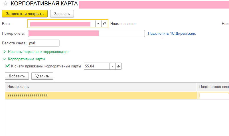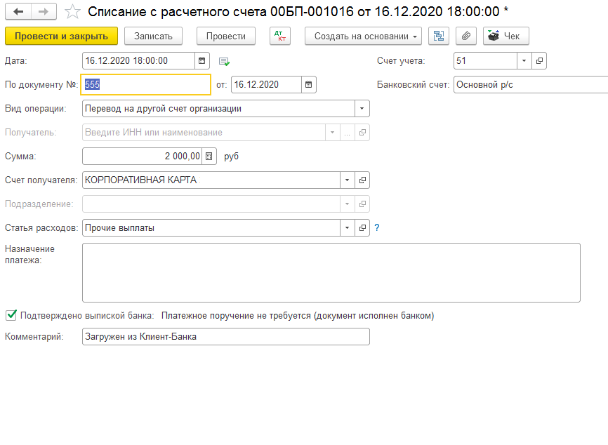 Дело в том, что там даже нет окна, где указать этот счет 55.04, когда выбираю операцию перевод на другой счет организации и корпоративную карту - в проводке автоматом идет счет 57.