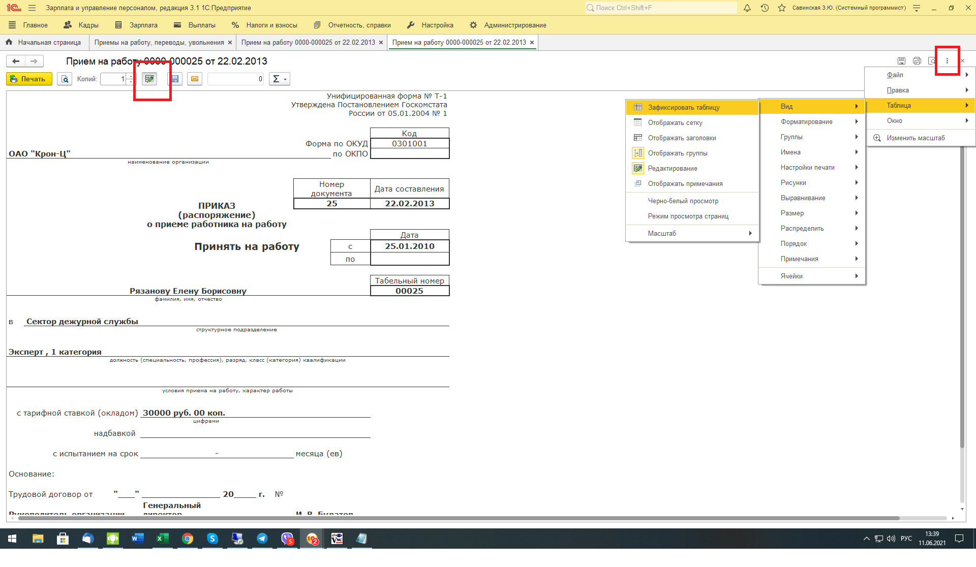 Редактирование не нашел где теперь? Мне даты надо исправить в табеле и в Т-51.