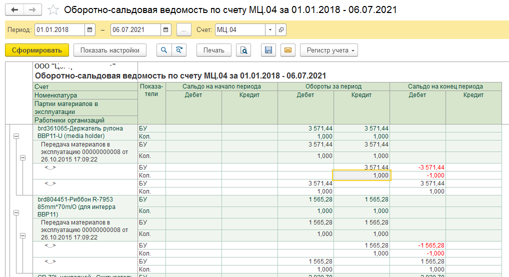 И вот, что мы видим, проваливаясь в обороты (причём не важно, по дебету или по кредиту)