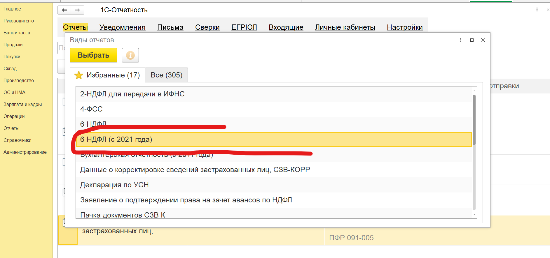"6-НДФЛ с 2021 года"- выбираю именно этот отчет (((