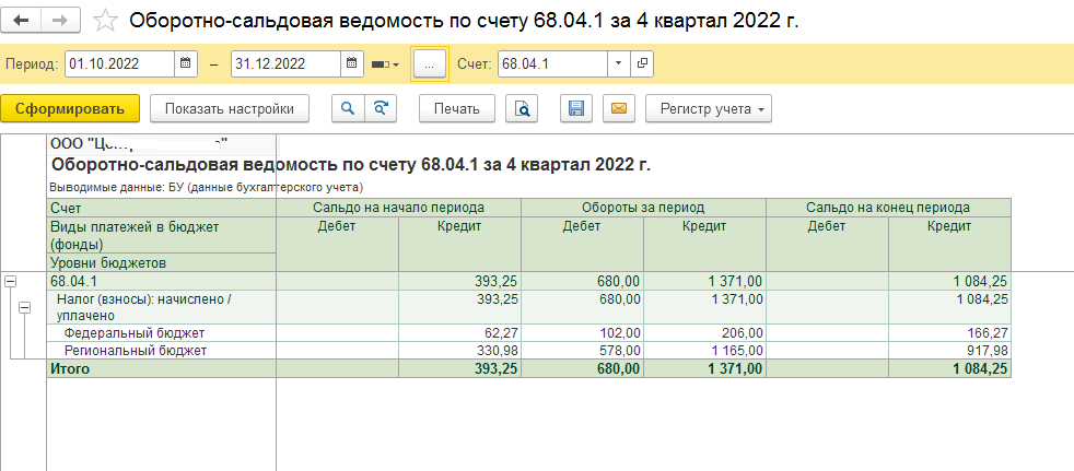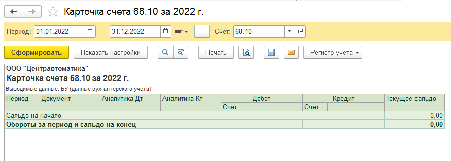 Выдаёт эту строку с пустым КБК по сч.68.10 Прочие налоги и сборы