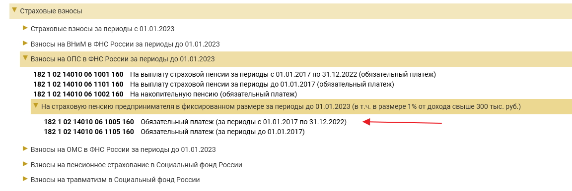 Цитата: Сообщение от Lisa-Mari Посмотреть сообщение какой КБК ставить в уведомлении, если я там хочу показать взносы ОПС 1% свыше 300 за 2022 год. |