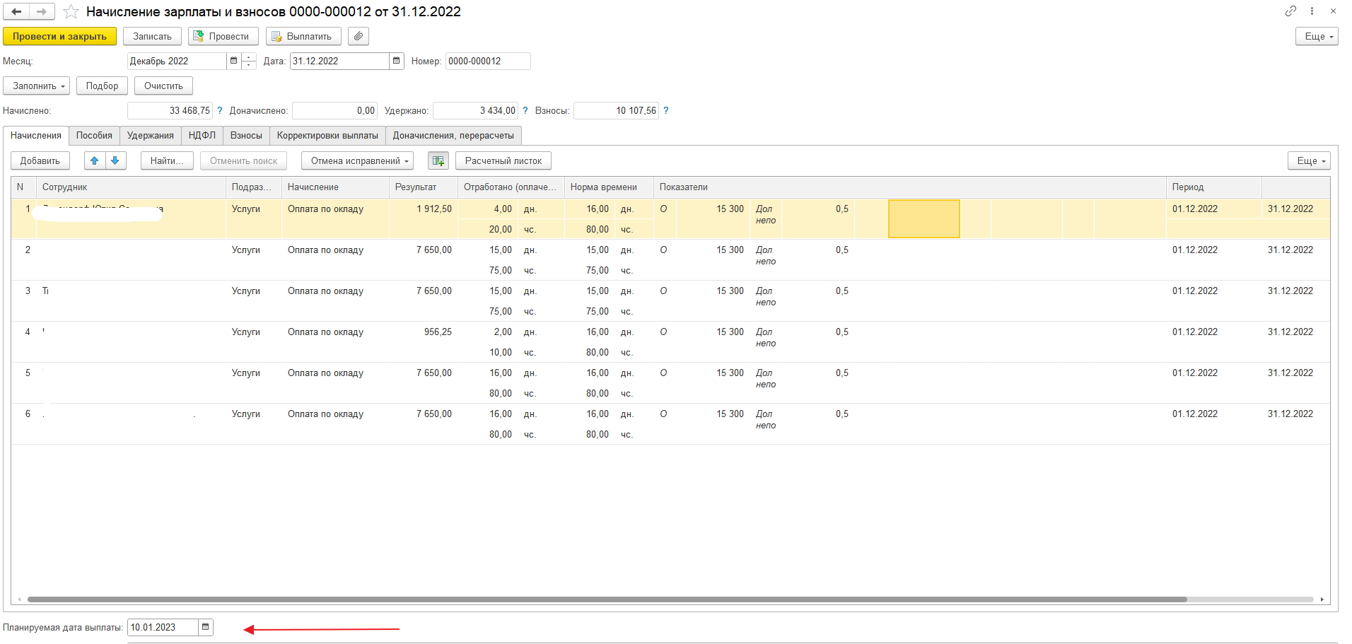 значит в ведомости начисления у Вас дата выплаты проставлена 31.12.22