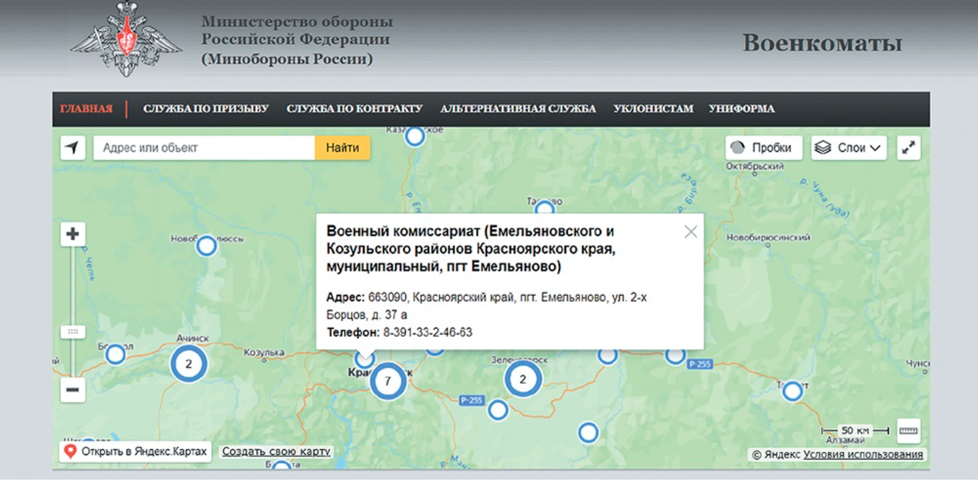 Если город крупный, то вы увидите несколько военкоматов. Кликните на один из них.