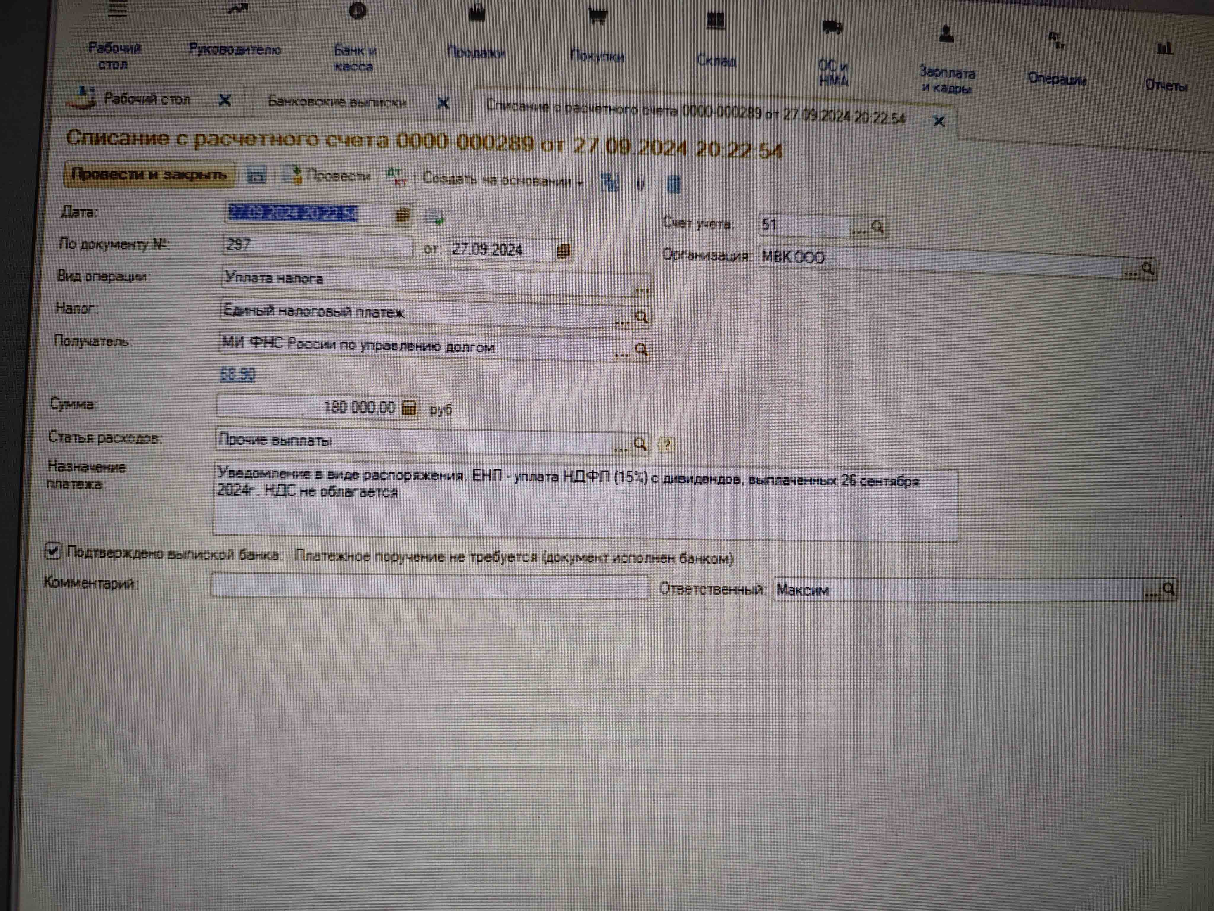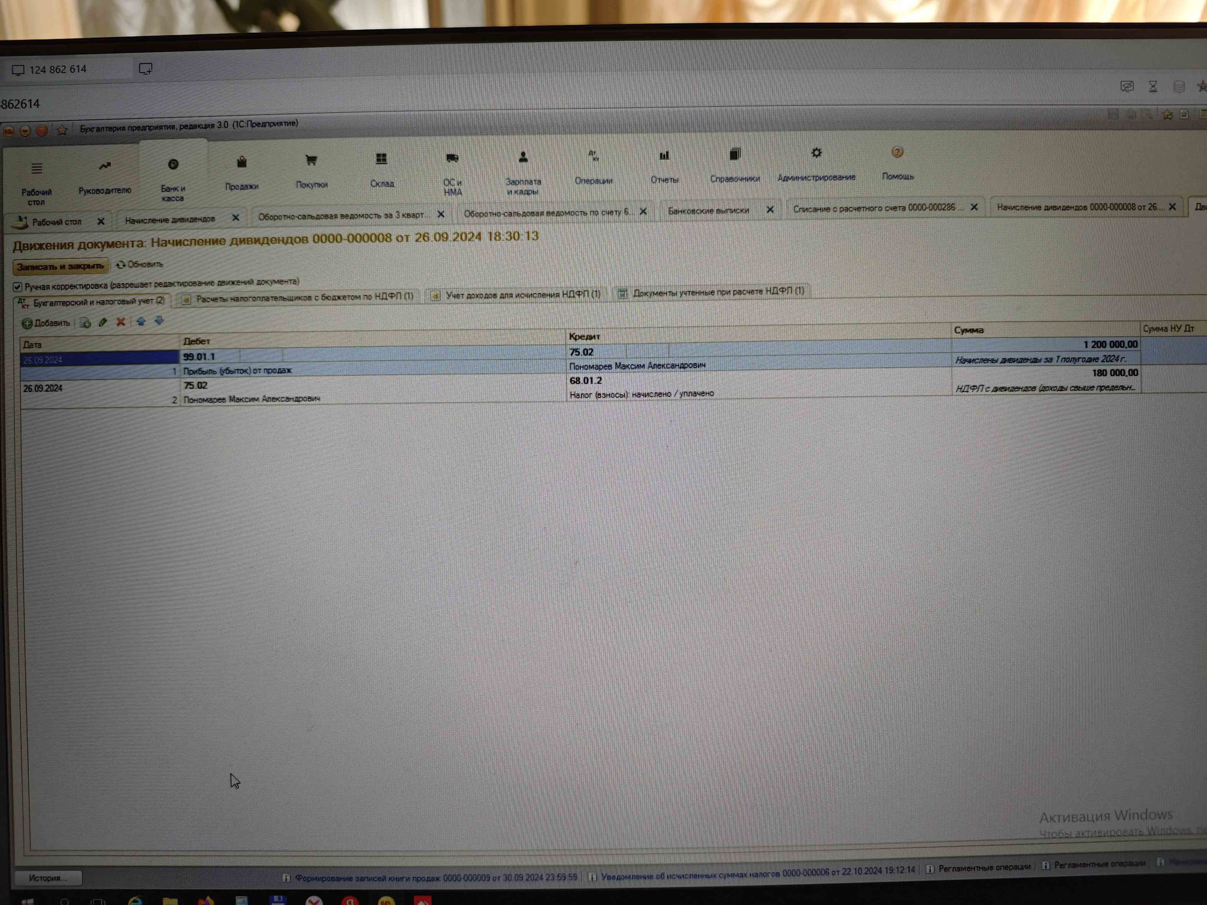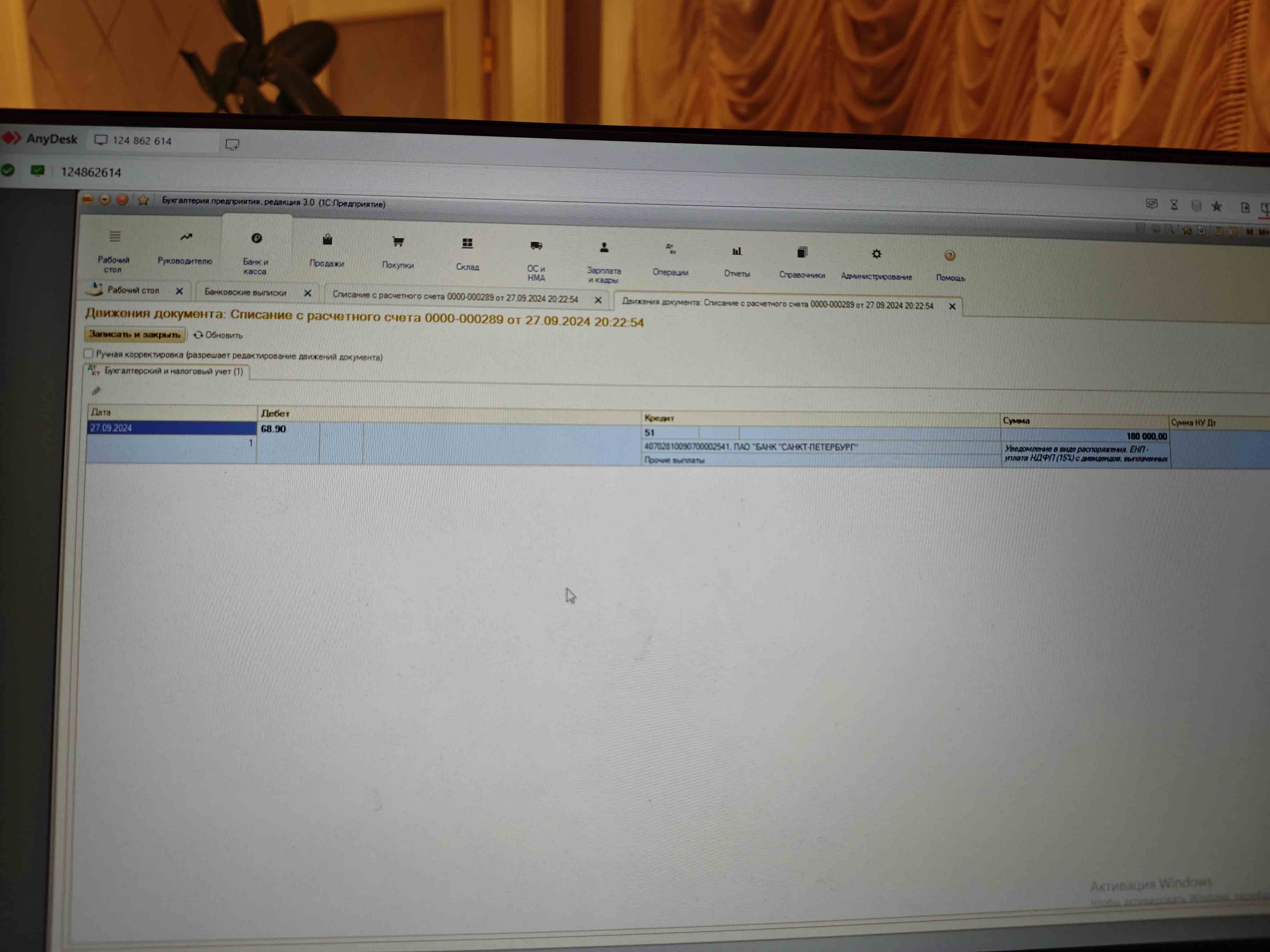 Разношу выписку и тут если смотреть проводки, то