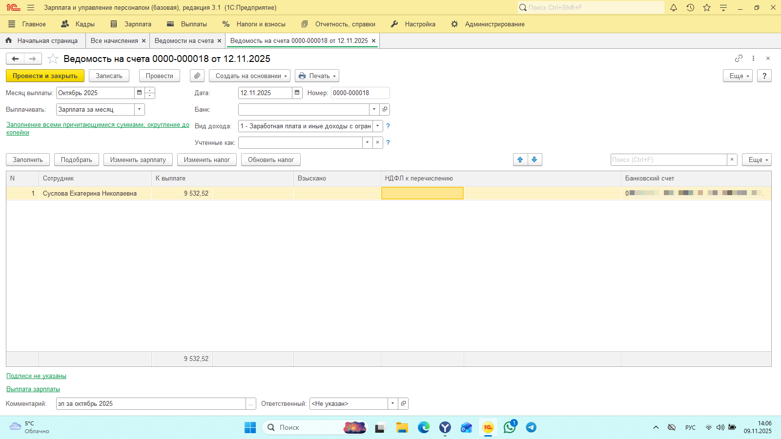 По умолчанию Не заполняется поле НДФЛ в ведомости на выплату ЗП
