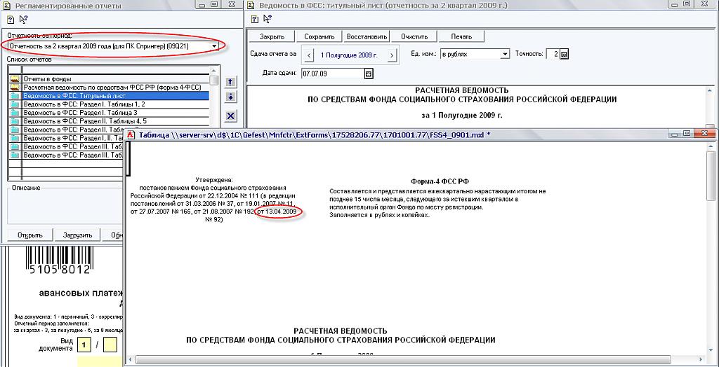 отчетность за полугодие 2009 для 7.7 и положить по адресу ..\ExtForms\ в базе данных