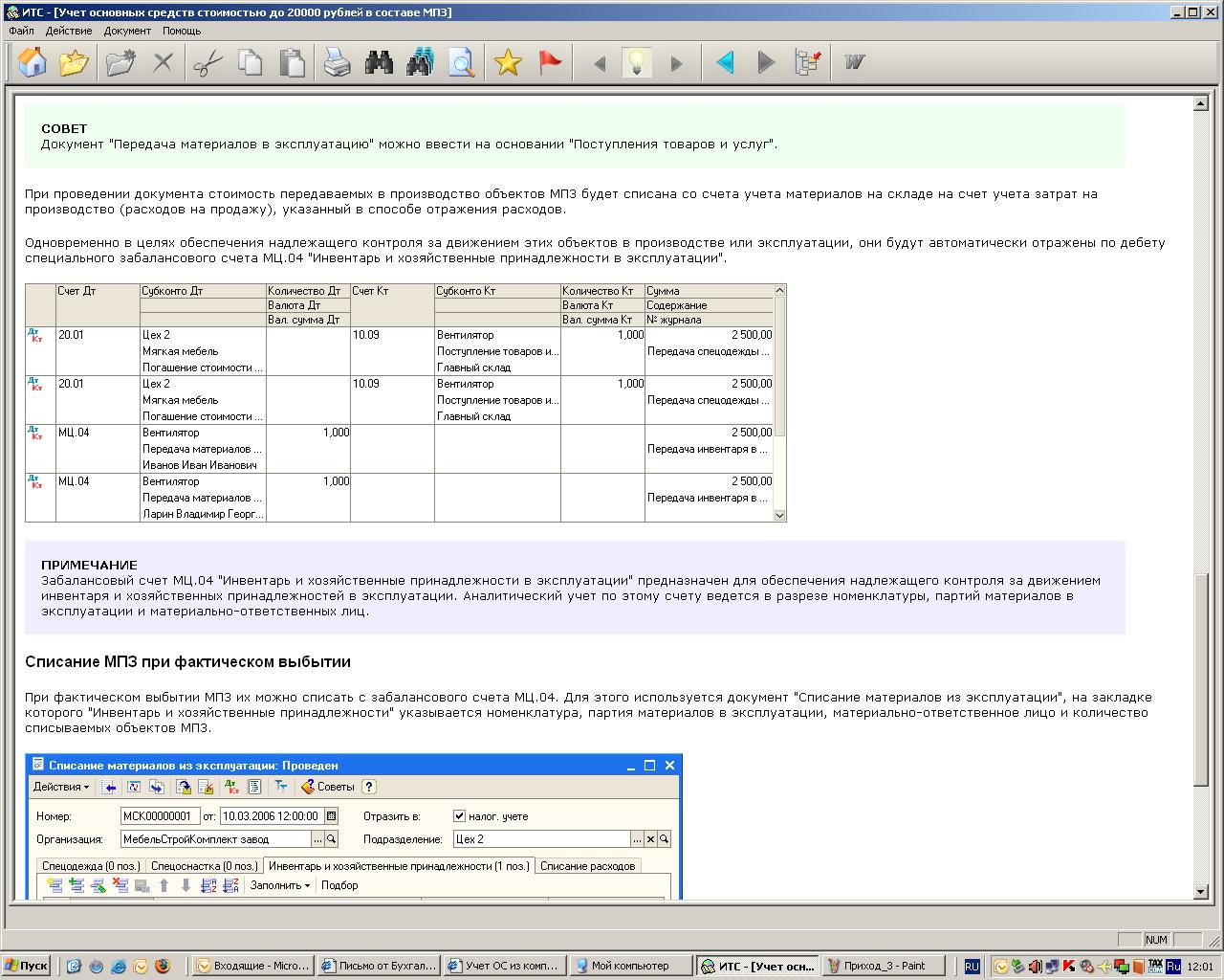 Спасибо Валерия за помощь. Дело в том, что у меня проблемка связана с тем, что все составляющие компьютера имеют разные документы (счета-фактуры и накладные), т.е. на каждую составляющую отдельный документ. Вот я и не знаю как мне приходывать и списывать эти части: по отдельности, или все же нужно создать один объект - компьютер, что бы в дальнейшем организовать его учет. Иначе в будущем у меня получится бардак в забалансовом учете из кучи процессоров и мониторов.