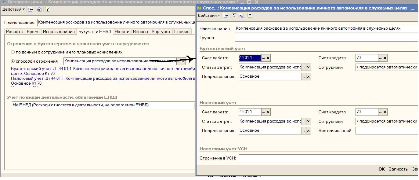 1. Ввод сведений о плановых начислениях сотрудников организации - ввел начисление (компенсация за использование авто в служебных целях)