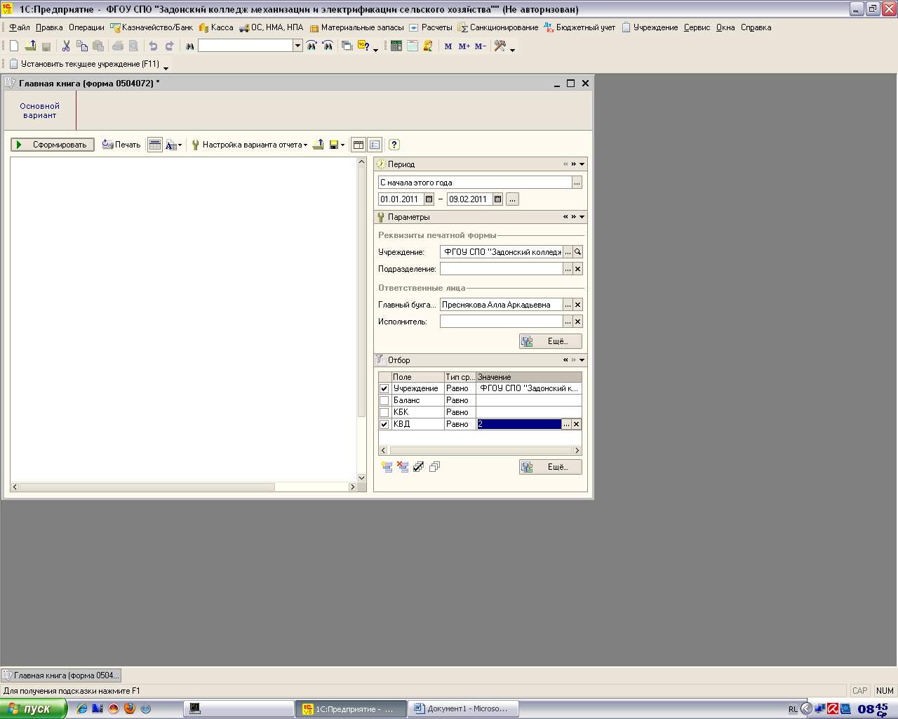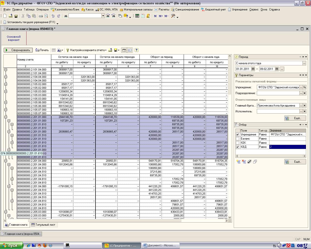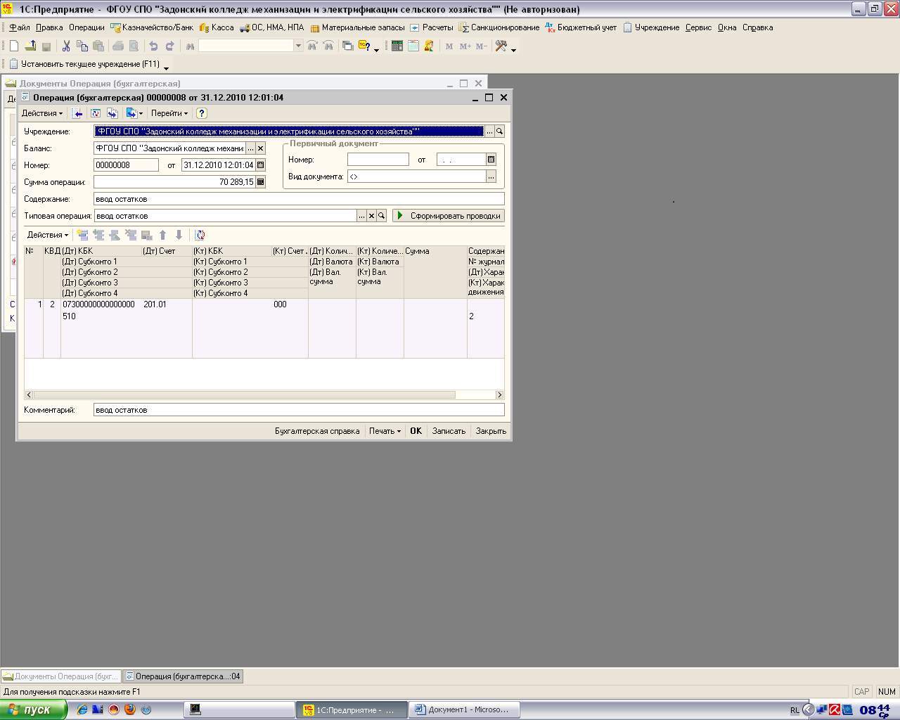 1с v8.1 предприятие. После ввода остатков через пункт меню "бюджетный учет" - это число в главной книге не появляется. Подскажите пожалуйста, что не так?