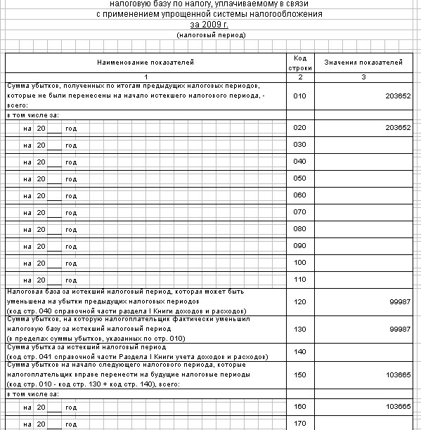 И еще, вопросик. Нашла от предыдущего бухгалтера книгу ДиР за 2009г. и декларацию. Честно я не знаю что было в 2008 году, и документов не видела. Но в 3 разделе книги у нее стоит убыток на 2009 год. Переходящий убыток на 2010 год 103 665. Я могу этот убыток уменьшить на налоговую базу налога за 2010 год?