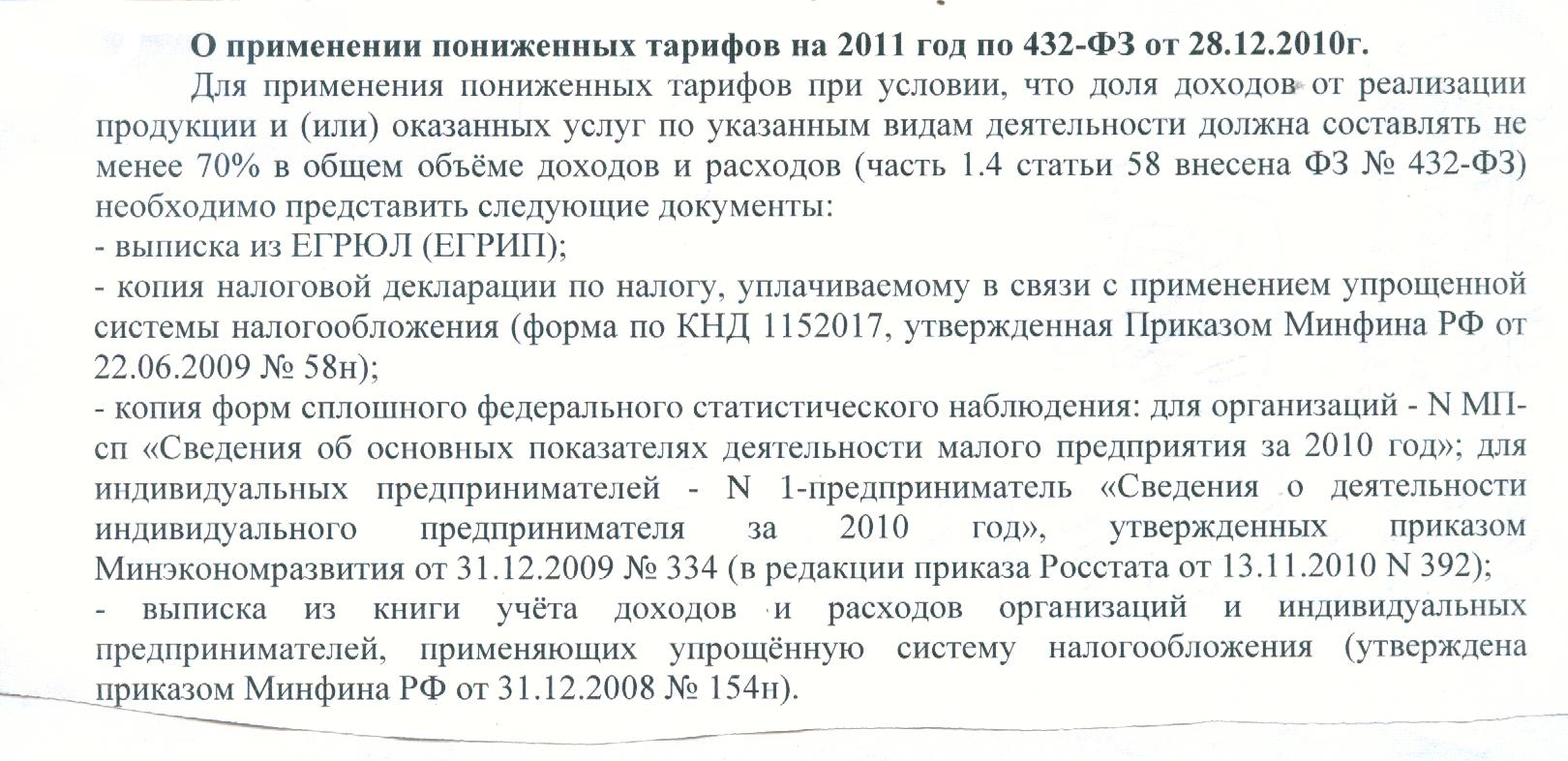 А на счет документов, которые нужно предоставить для применения пониженных тарифов
