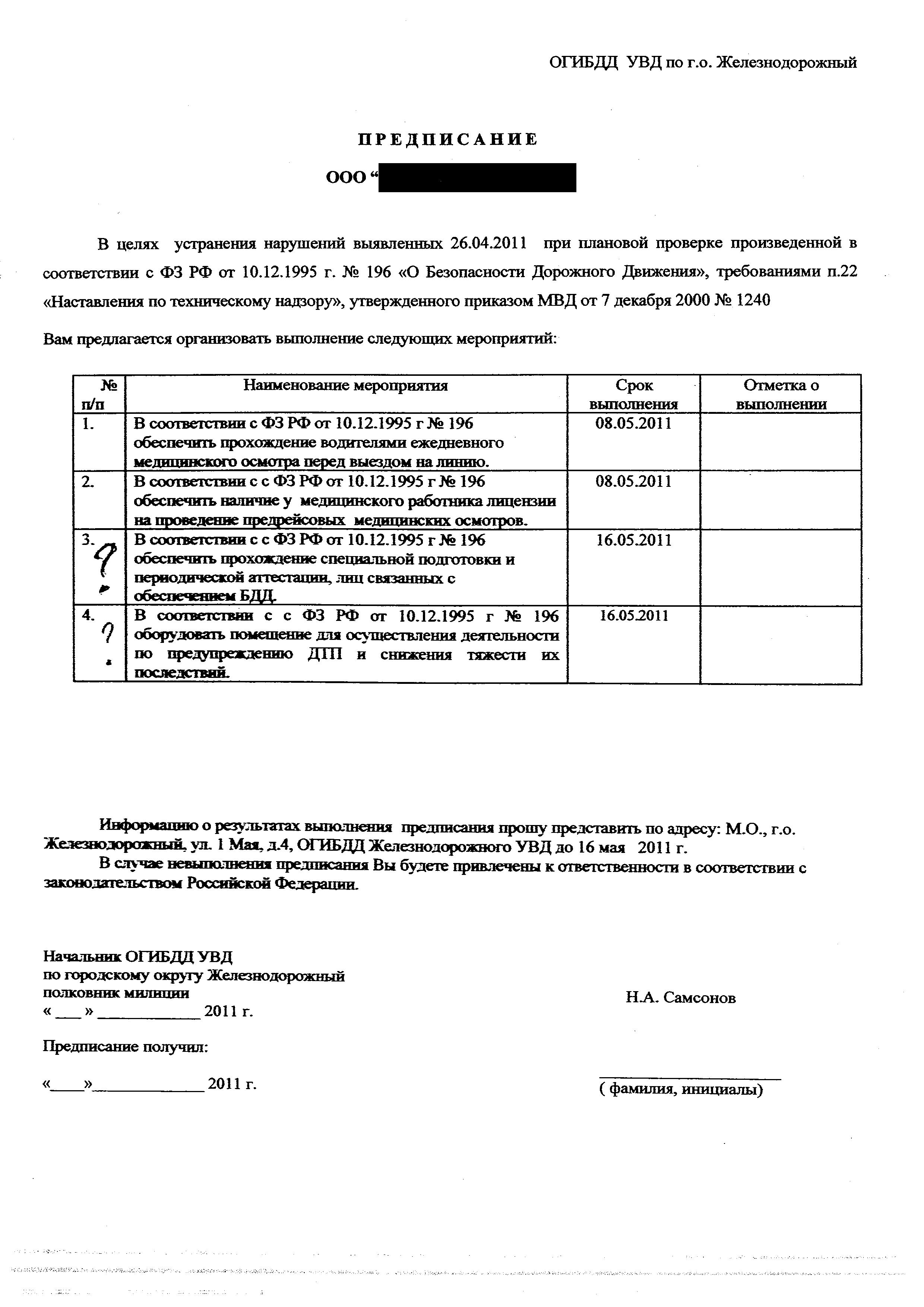Так как уже настряпали предписание нам.....Причем без подписей и печатей, но наш ответственный за автохозяйство уже у них расписался в получении