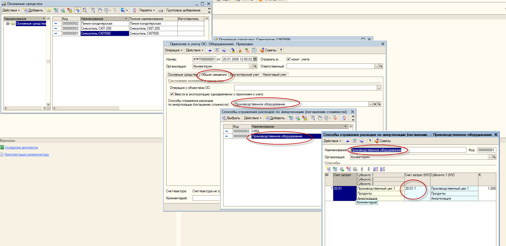 специалист находится в другом городе теперь, поэтому к нему обратиться несколько проблематично... А где карточки ОС заводятся? в какой вкладке, может там что-то не так...