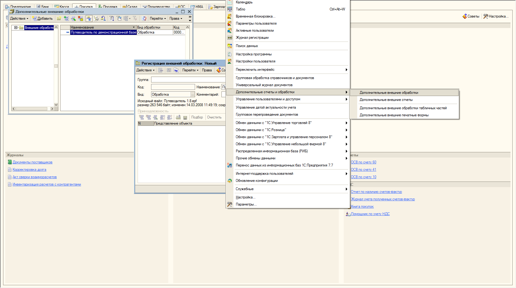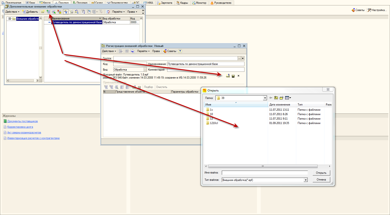 По умолчанию 1С 8.2 БП 2.0 как подключить обработку?