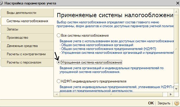 В первой картинке я показала, что в настройках параметров учета выбрана УСН!