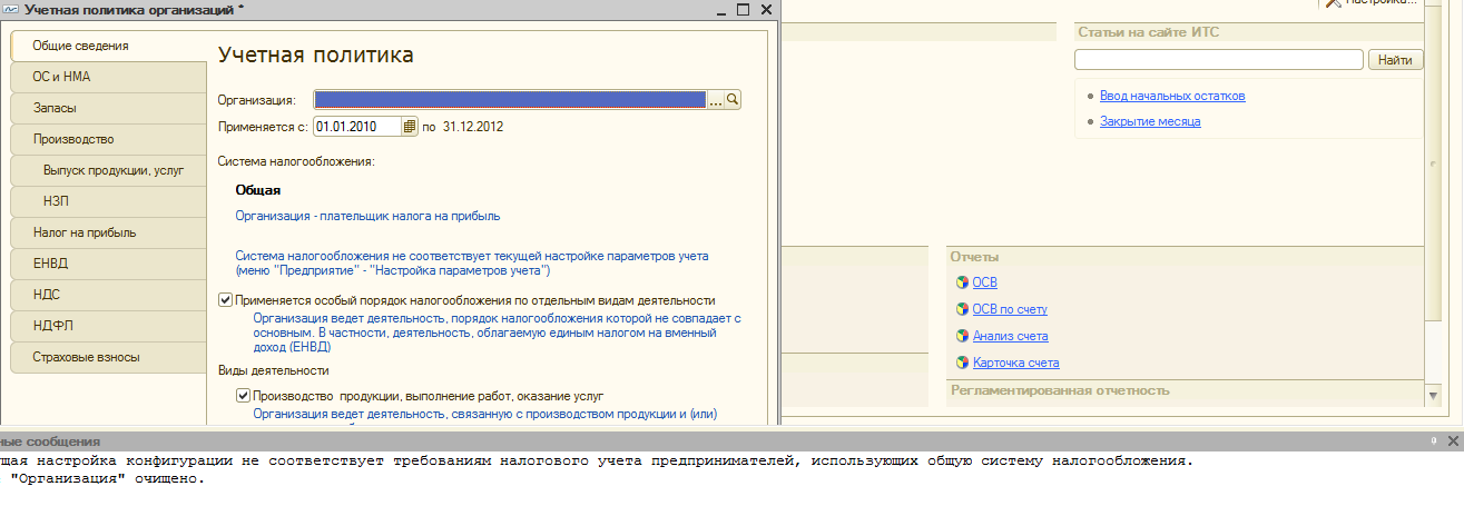 Стартовые настройки УЧЕТНАЯ ПОЛИТИКА - в окошке "учетная политика" выдаются только параметры для создания политики для ОБЩЕЙ системы налогообложения (при этом в настройках организации у меня проставлено УСН!!!) В методичке для 8-ки есть даже картинка, где предлагается выбор уч.политики ОСН или УСН! а у меня такого выбора нет. Вопрос: как создать учетную политику для УСН? Или можно (или даже нужно - всё-таки ИП!) как-то вообще игнорировать эту опцию?