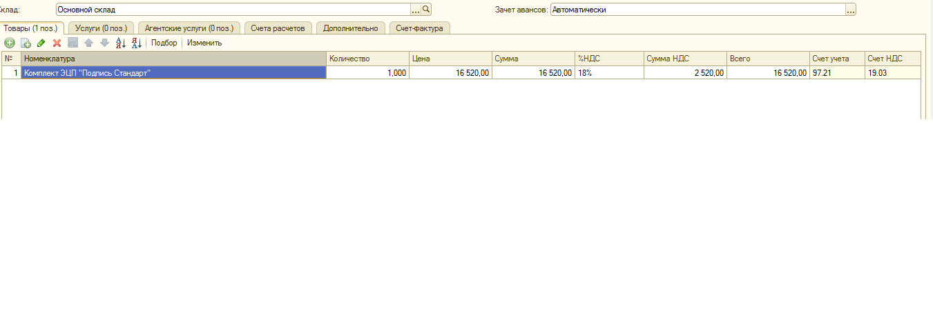 polly_ly, Я буду вам очень признательна за помощь. Вот подскажите как вы в программе в самом документа разносили вот эту лицензию на закладке товары или услуги (у нас лицензия, сам ключ, услуга по копированию и установке). Я смотрю как заносил предыдущий бухгалтер, все стоит на закладке "Услуги". Ну разве сам ключ - это же флешка, не надо его относить к товарам???? и сразу списывать???