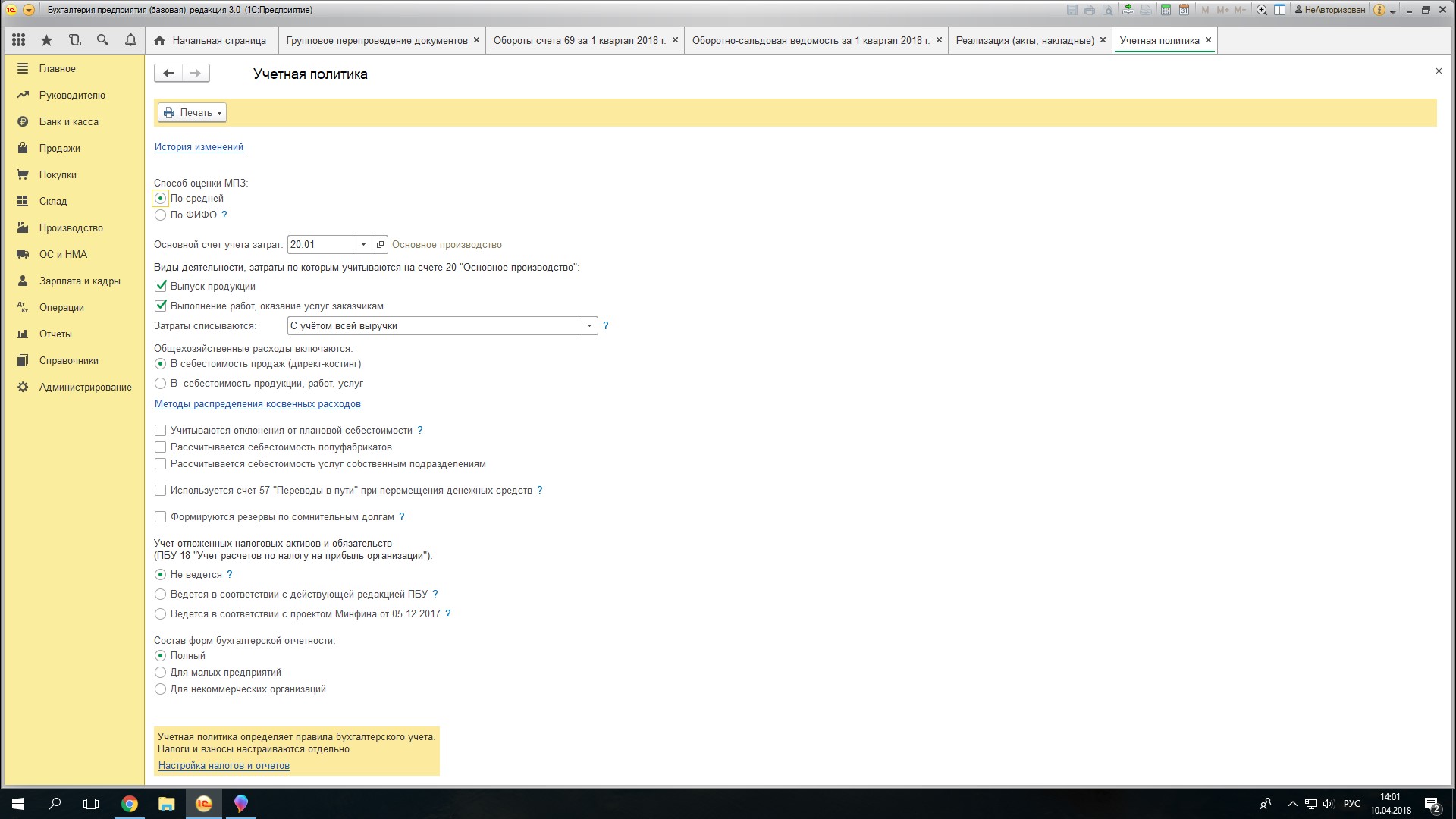 И пройдитесь по всей Учетной политике и по всем Параметрам учета в программе. проверьте, что все соответствует вашим требованиям. |