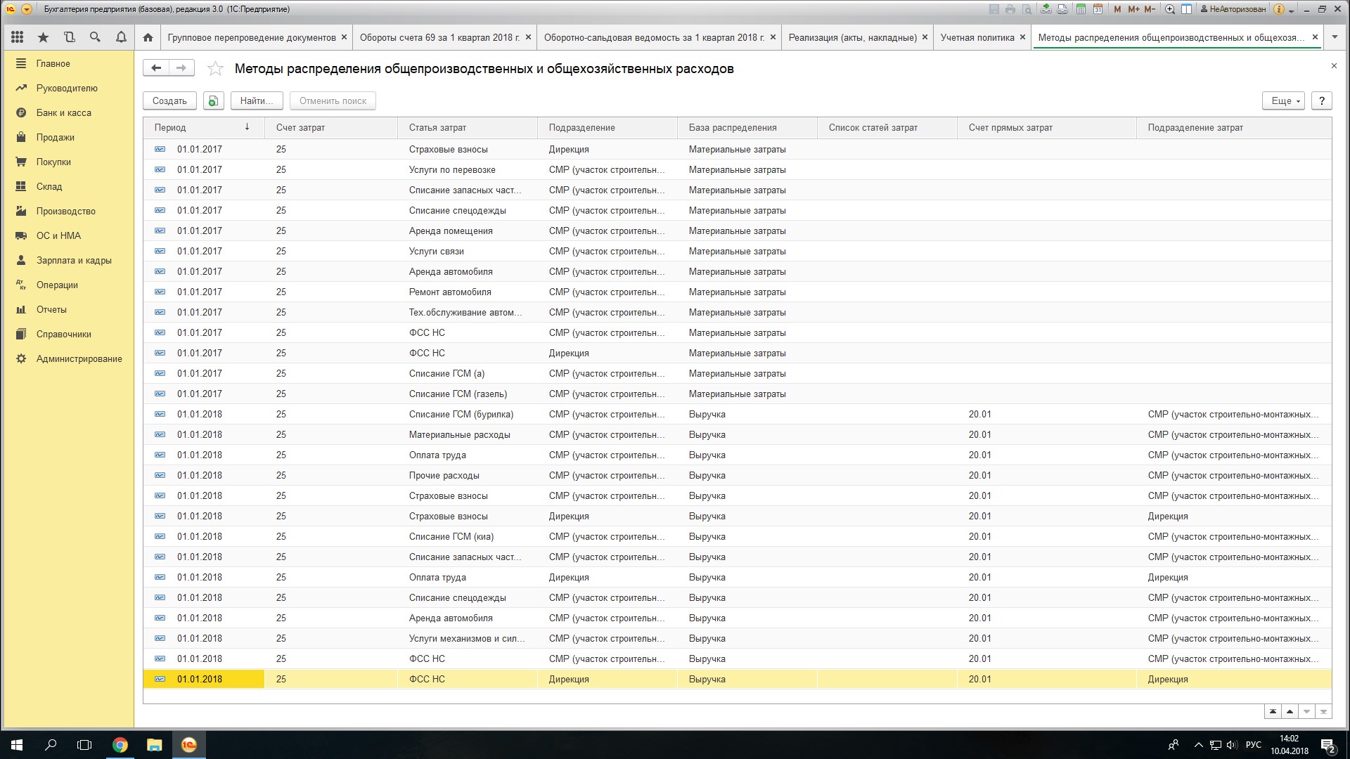 Нашла журнал операций Entry, подскажите пожалуйста а какой тип документа надо выбрать чтобы списать ошибки прошлых лет? Посмотрела в настройках учетной политики за предыдущие года там везде база распределения косвенных расходов выручка и ведь нормально 26 счет закрывался даже если не было выручки (только 20 на закрывался поэтому я расходы связанные с зарплатой относила на 26 счет-во избежании вот таких проблем) |