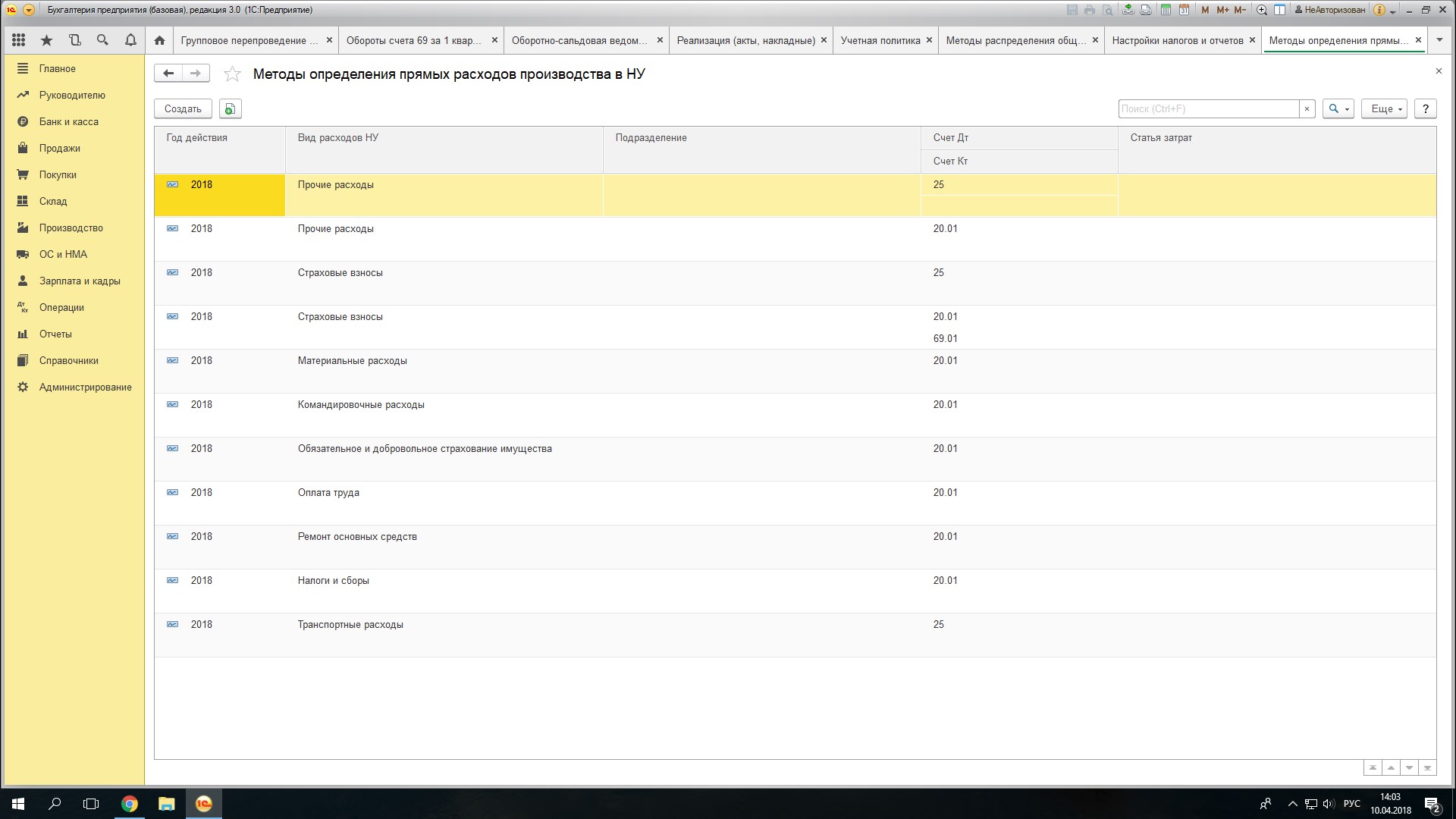 По поводу расходов проверьте стоит ли директ-костинг на 15г.