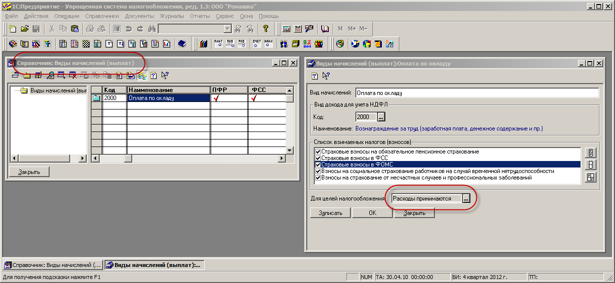 Log_in, по видам начисления расходы принимаются - такая же настройка.