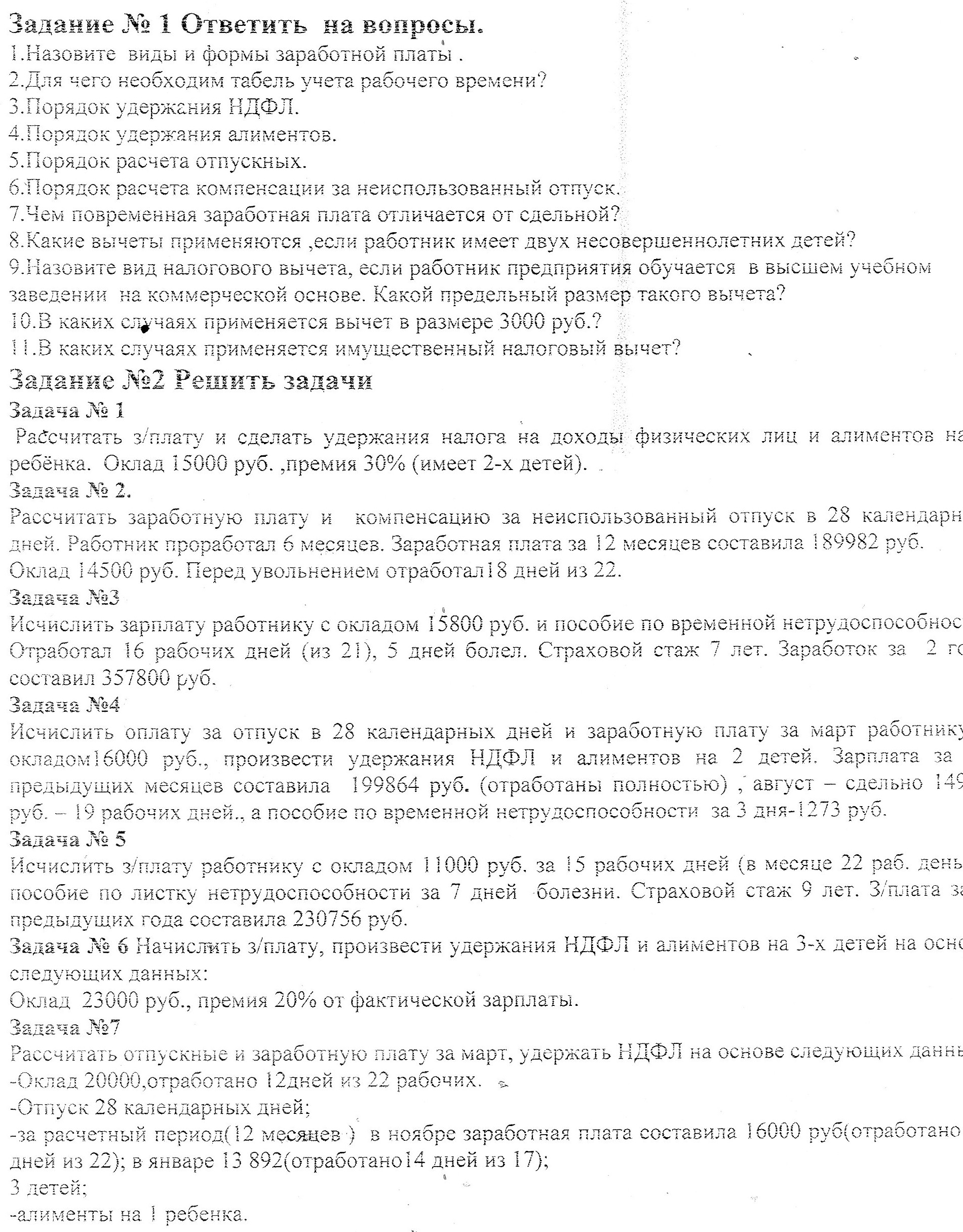 По умолчанию Нужна помощь по решению задач тема : рассчет заработной платы