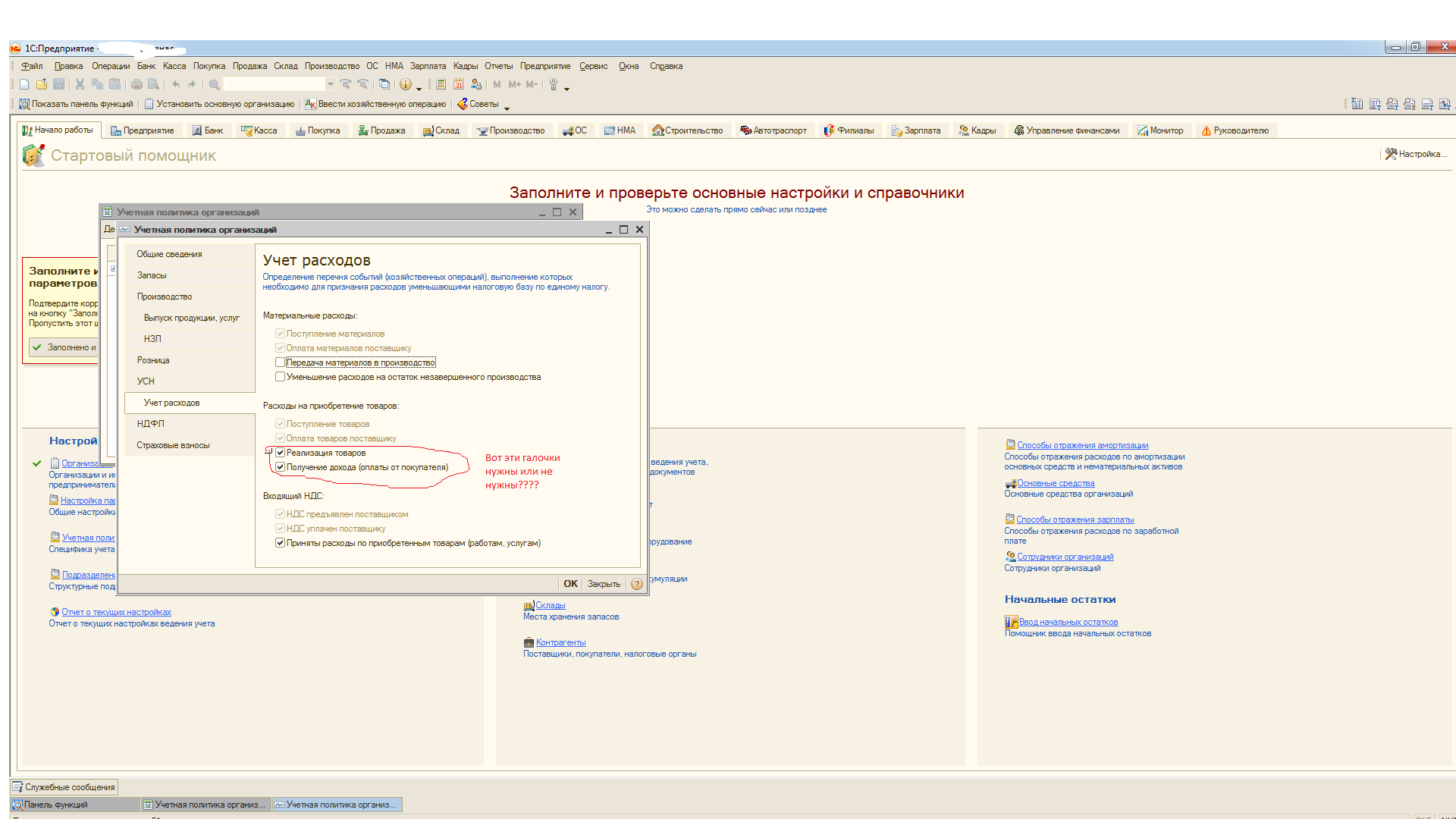 Добрый день скажите мне кто могуч, в этом вопросе. Компания на усно (15%). Собралась формировать декларацию по налогу и книгу доходов и расходов. В бух. оборотке у меня убыток 239 174, формирую декларацию в 1с там убыток показывает 296 135, доход одинаковый 52 546. Почему так получается не знаю. Советовалась с бухгалтером ,(она сказала что всё должно быть одинакого) уже неделю ищу эту разницу и не могу найти. Может эта разница нормально??? И еще я не знаю нужны ли галочки в учетной политике (скрин ниже) Если я ставлю галочки то в налоговом убыток меньше чем в оборотке, а если не ставлю галочки то убыток такой какой описала выше (т.е. он больше) .Компания - вид деятельности -оптовая торговля. программа 1с 8,2- Бухгалтерия предприятия, редакция 2.0