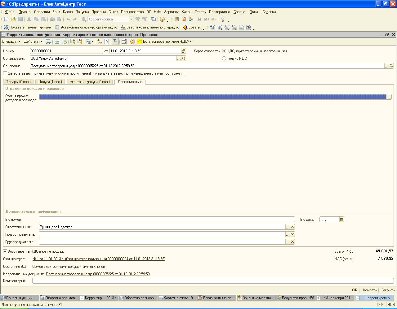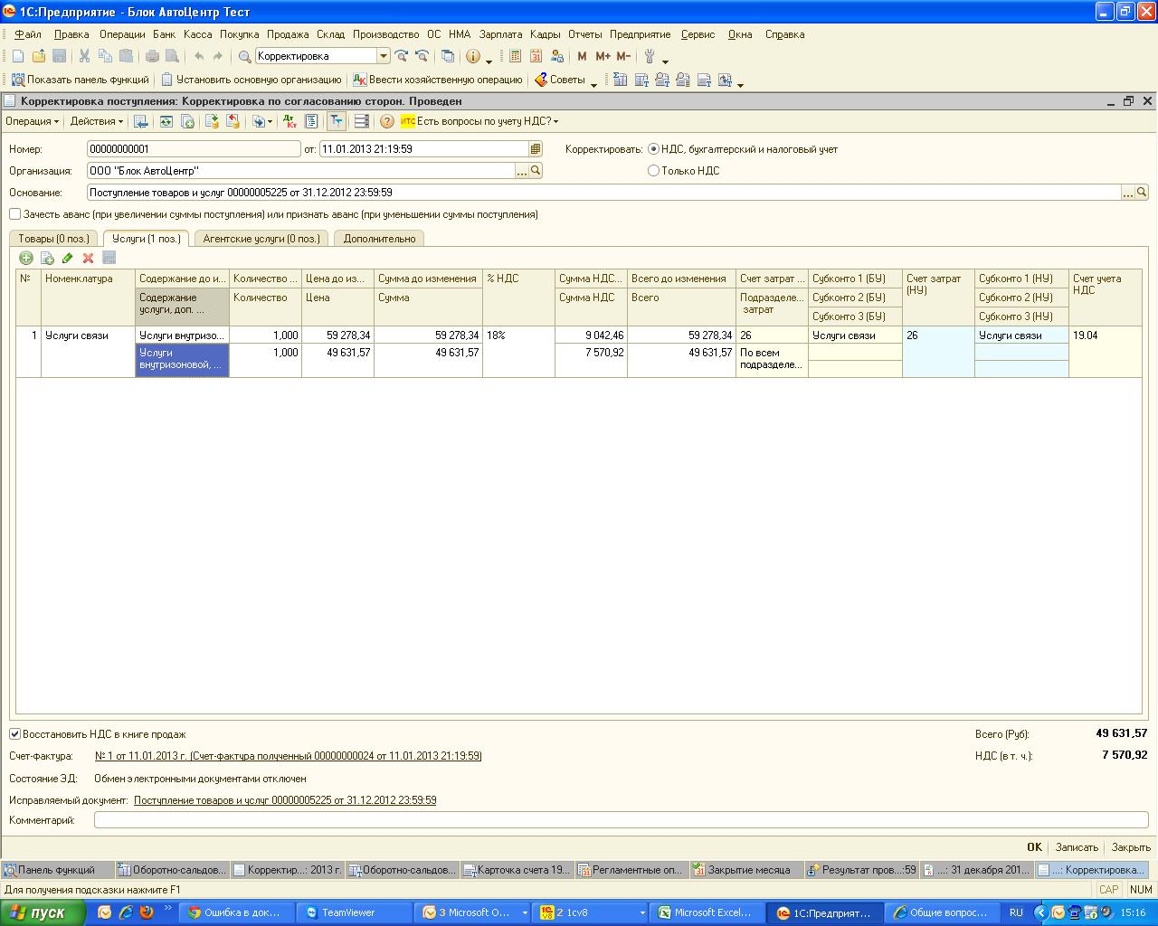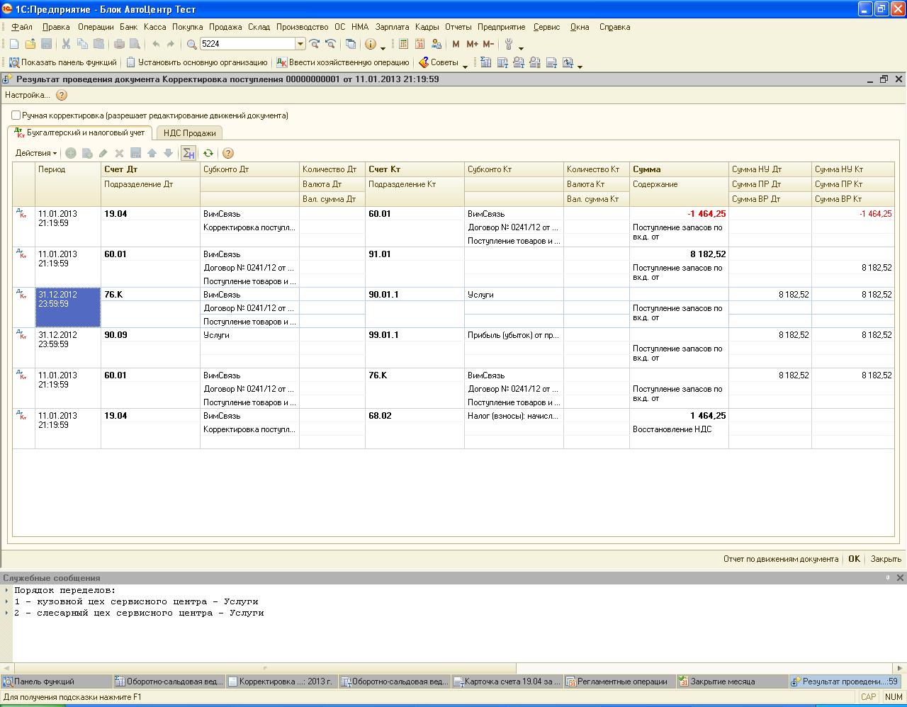 Нужна консультация специалиста про правильности формирования проводок в документе корректировка поступления. Корректируем услуги в текущем периоде за прошлый период. Но документ сформировал странные проводки, причем дату поставил периода, который уже закрыт. Скажите это ошибка 1с? и как правильно тогда отразить данную операцию.