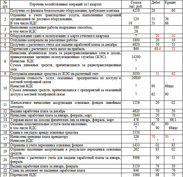8 Начислена абон плата (надеюсь это основной вид деятельности) Т/е учавствует 62 (покупатели) выручка (90счет) и НДС 68.02 Смотрим что получается Дт62 КТ90.01 (начислена абон плата) (С НДС) но чтоб показать это начисл НДС делаем проводку Дт90.3 КТ 68.02 Ну попробуйте хоть что нибудь исправить сами! Вам же это в будущем пригодится!! Если у вас терпит время то смогу помочь в субботу! Времени мало!! Может кто то еще и поможет!!