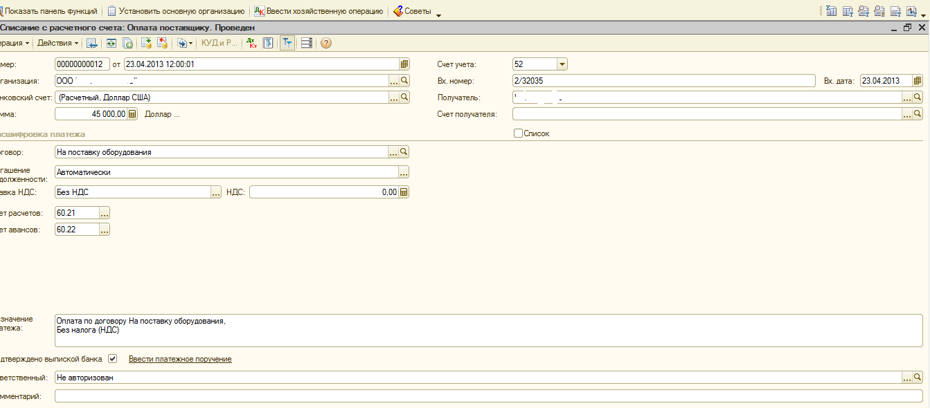 На всякий случай выкладываю последовательно скрины по всем операциям по покупке валюты и последующей оплате поставщику с валютного счета: гляньте, пожалуйста