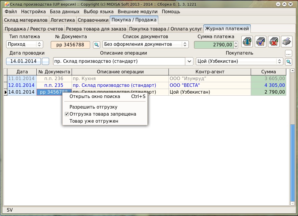 Сегодня постараюсь опубликовать новую версию ... но дальше журнала платежей программа пока не сделана. ... по этому нет пока увязки между отгрузкой товара и журналом платежей.