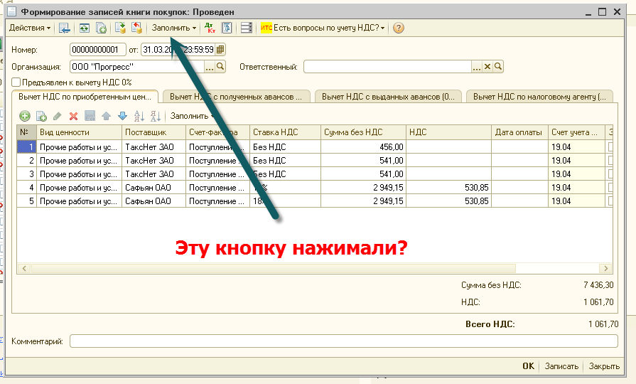 Здравствуйте! В книгу покупок не вошли счет-фактуры за предыдущий период. В документе переставила дату (которая мне нужна),поставила галочку отразить НДС. Формирую книгу покупок и не вижу этих счет- фактур. Почему не могу разобраться.